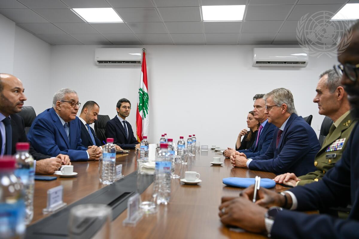 Jean-Pierre Lacroix (third from right) Under-Secretary-General for Peace Operations, meets with Abdallah Bouhabib (second from left), Minister of Foreign Affairs of the Lebanese Republic, in Beirut.