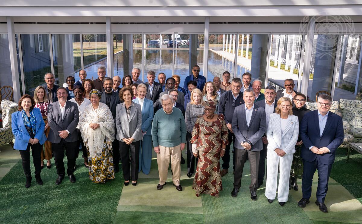 Secretary-General António Guterres (centre) poses for a group photo during the biannual session of the UN System’s Chief Executives Board for Coordination (CEB) at the Greentree Estate on Long Island. At third from left is Deputy Secretary-General Amina Mohammed.