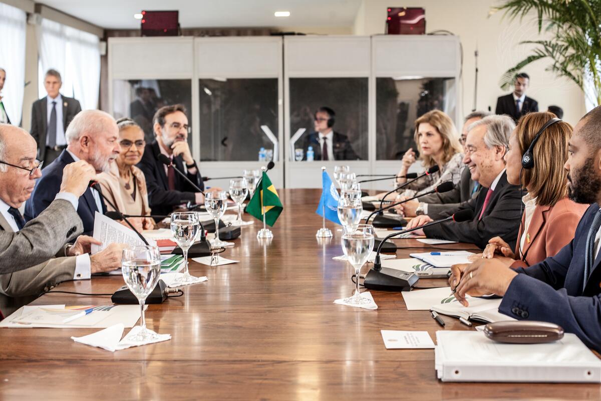 Secretary-General António Guterres (centre right) meets with Luiz Inácio Lula da Silva (centre left), President of the Federative Republic of Brazil, in Rio de Janeiro.