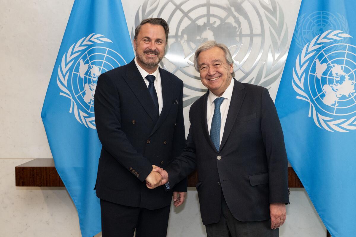Secretary-General António Guterres (right) meets with Xavier Bettel, Deputy Prime Minister and Minister for Foreign Affairs of the Grand Duchy of Luxembourg.
