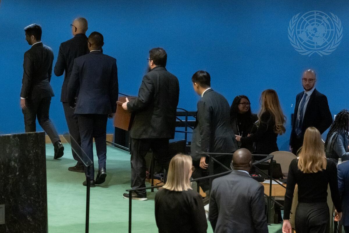 Conference Officers collect ballot papers during the election of members of the United Nations Commission on International Trade Law.