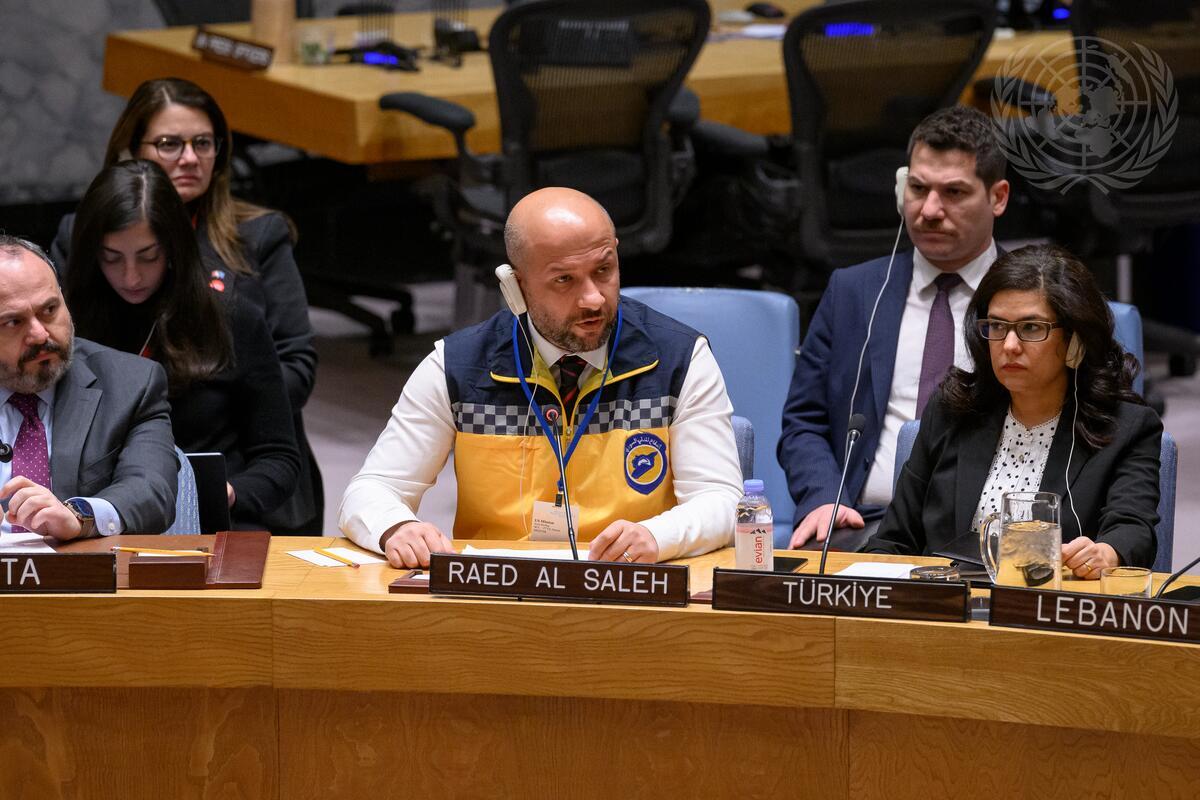Raed Al Saleh, Director of the White Helmets, briefs the Security Council meeting on the situation in the Middle East (Syria).