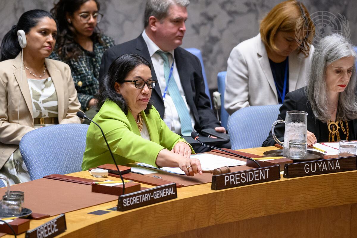 Carolyn Rodrigues-Birkett, Permanent Representative of the Cooperative Republic of Guyana to the United Nations and President of the Security Council for the month of June, chairs the Security Council meeting on the situation concerning the Democratic Republic of the Congo.