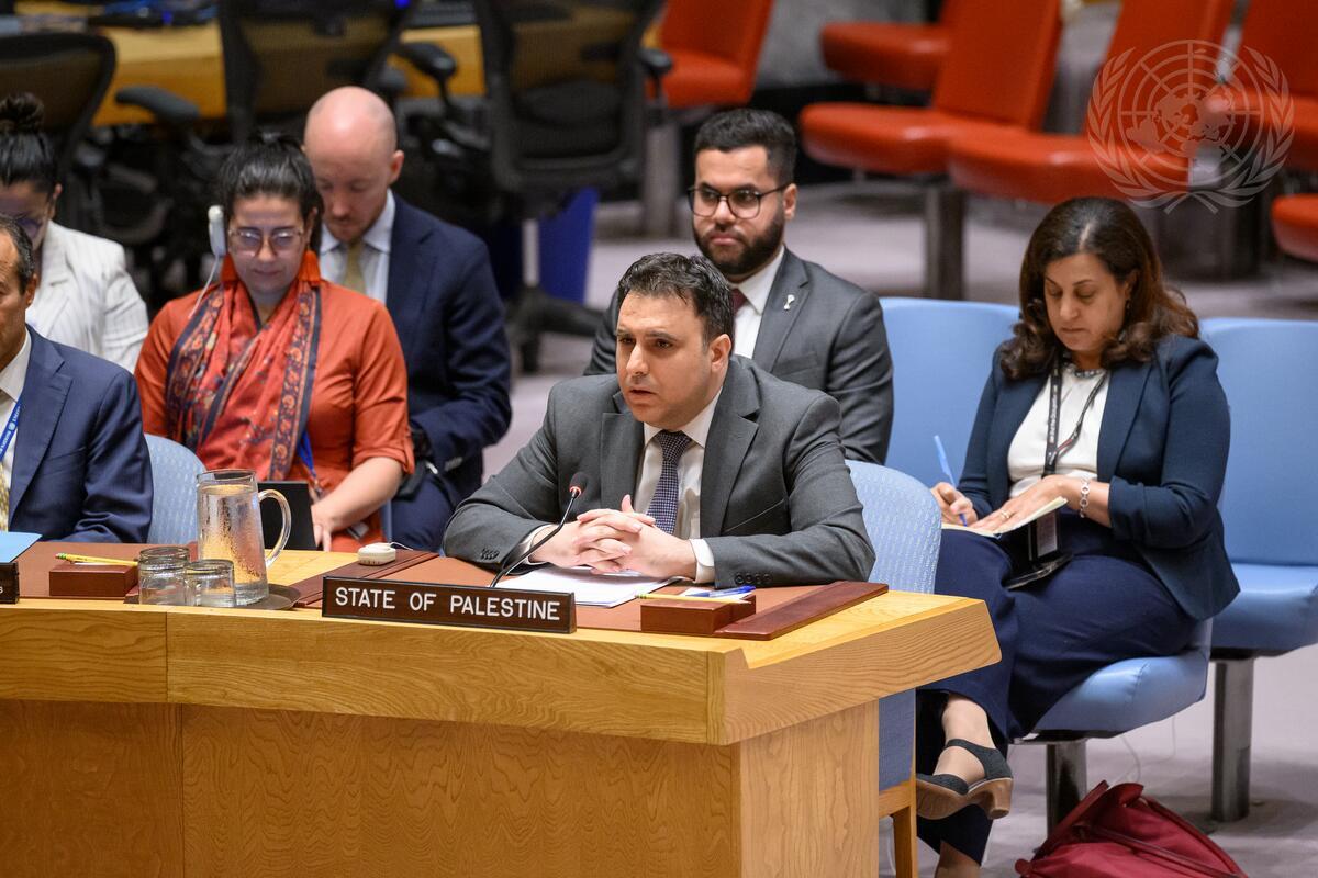 Majed S. F. Bamya, Deputy Permanent Observer of the State of Palestine to the United Nations, addresses the Security Council meeting on the situation in the Middle East, including the Palestinian question.