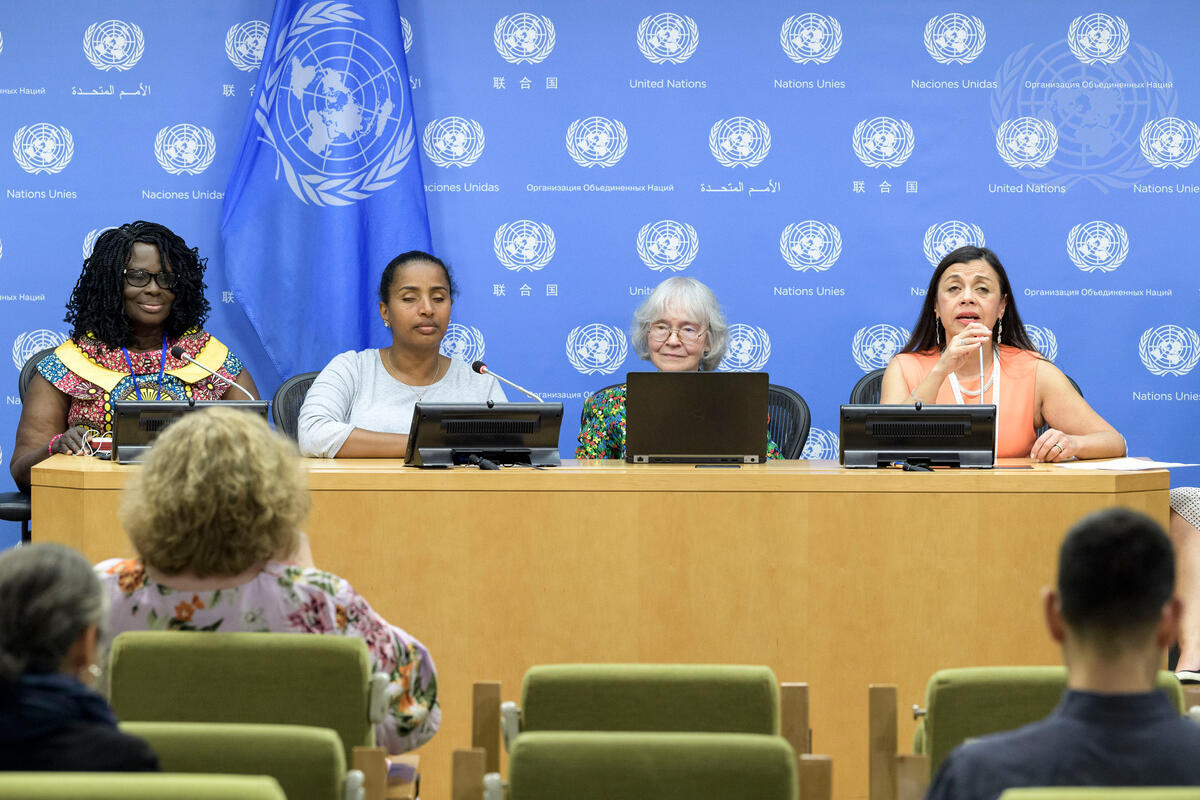 María Soledad Cisternas Reyes (right), Secretary-General’s Special Envoy on Disability and Accessibility, briefs press on the issue of women with disabilities, on sidelines of the twelfth session of the Conference of State Parties to the Convention on the Rights of Persons with Disabilities (CoSP12).