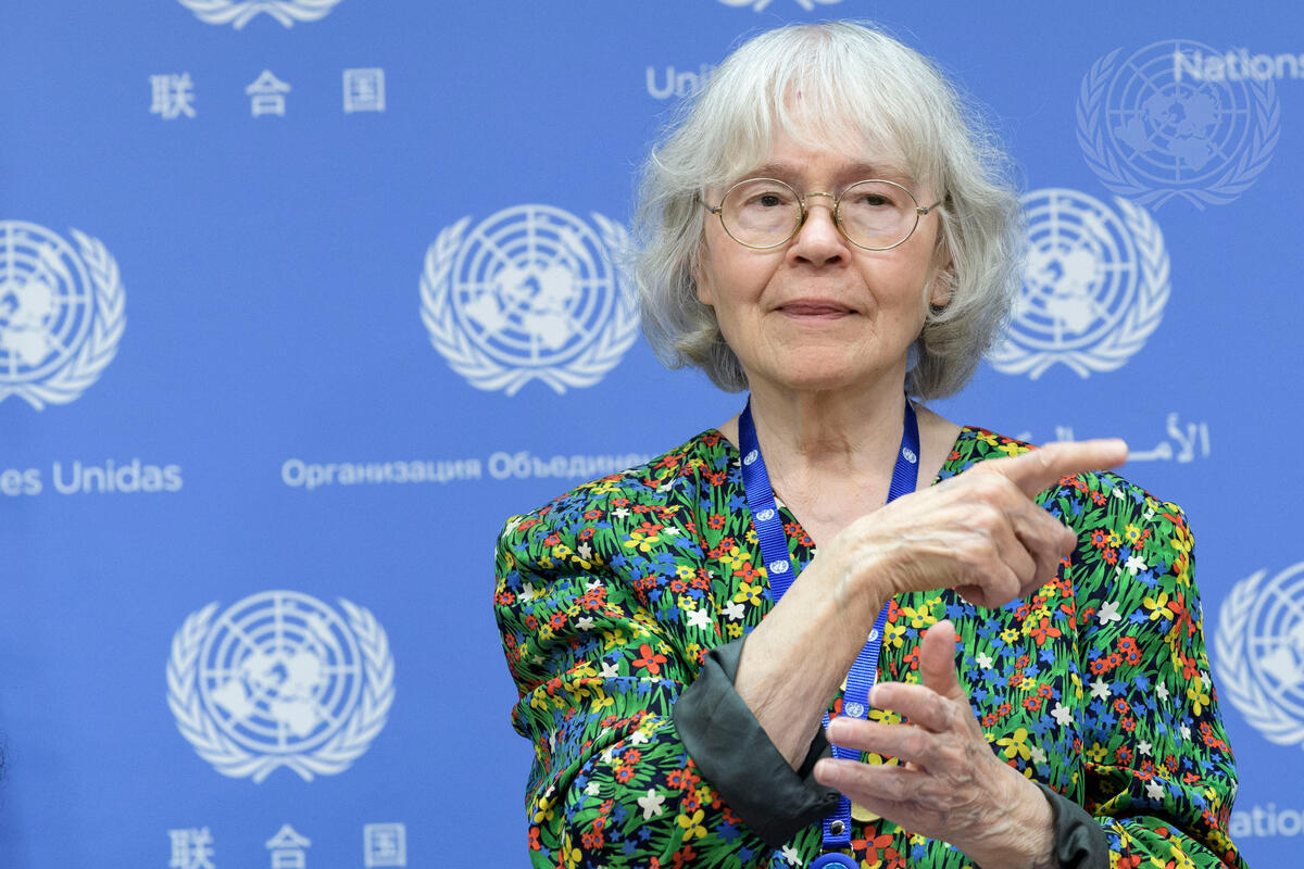 Liisa Kauppinen, former President of the World Federation of the Deaf and 2013 Awardee of the United Nations Prize in the Field of Human Rights, briefs press on the issue of women with disabilities, on sidelines of the twelfth session of the Conference of State Parties to the Convention on the Rights of Persons with Disabilities (CoSP12).