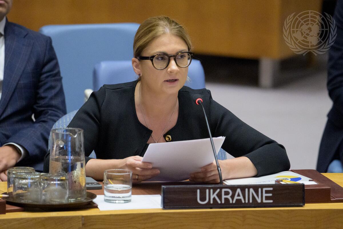Khrystyna Hayovyshyn, Deputy Permanent Representative of Ukraine to the United Nations, addresses the Security Council meeting on the maintenance of peace and security of Ukraine.