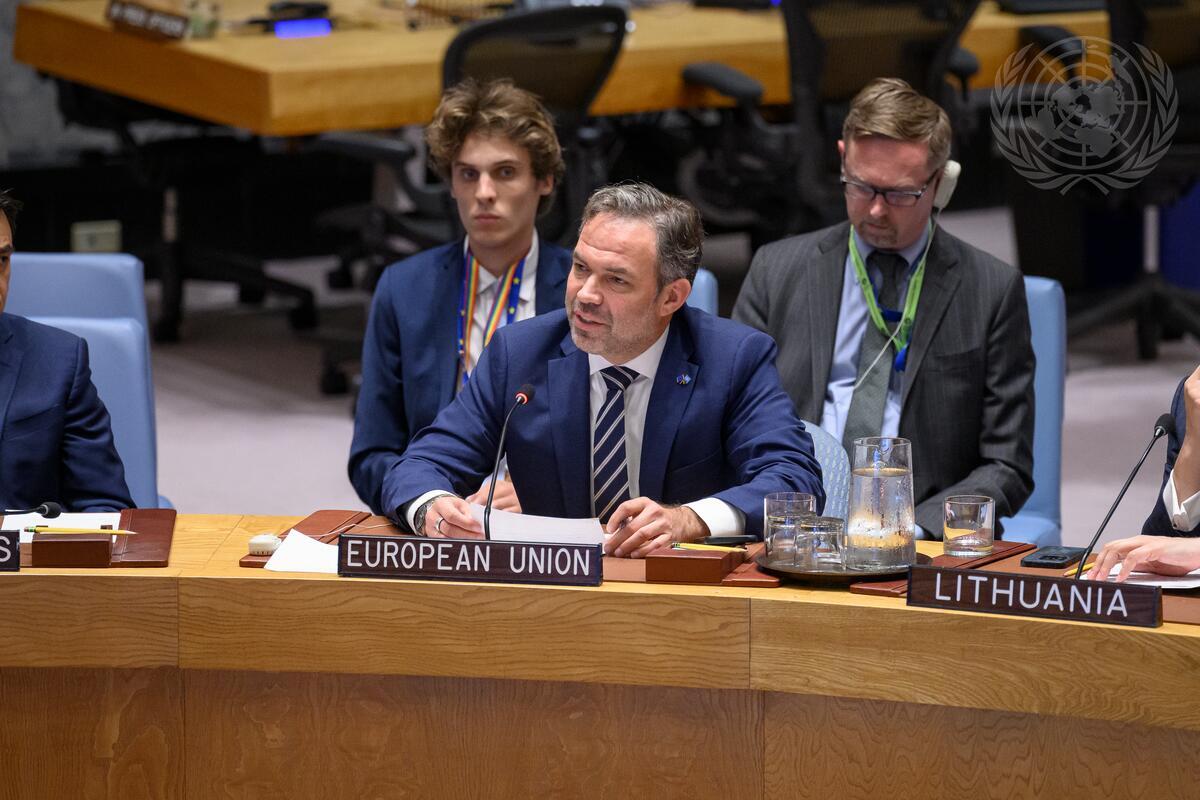 Daniel Beck, Chargé d'Affaires a.i. of the Delegation of the European Union to the United Nations, addresses the Security Council meeting on threats to international peace and security.