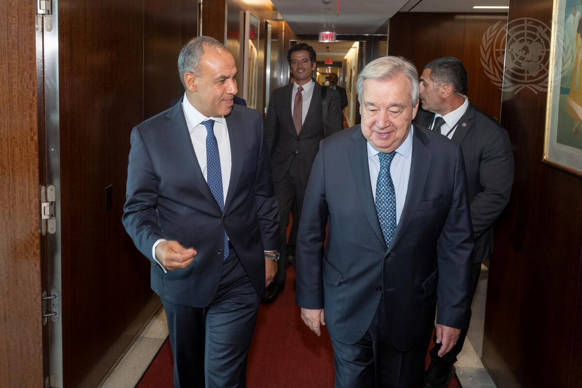 Secretary-General António Guterres (right) meets with Badr Ahmed Mohamed Abdelatty, Minister for Foreign Affairs, Emigration and Egyptian Expatriates of the Arab Republic of Egypt.