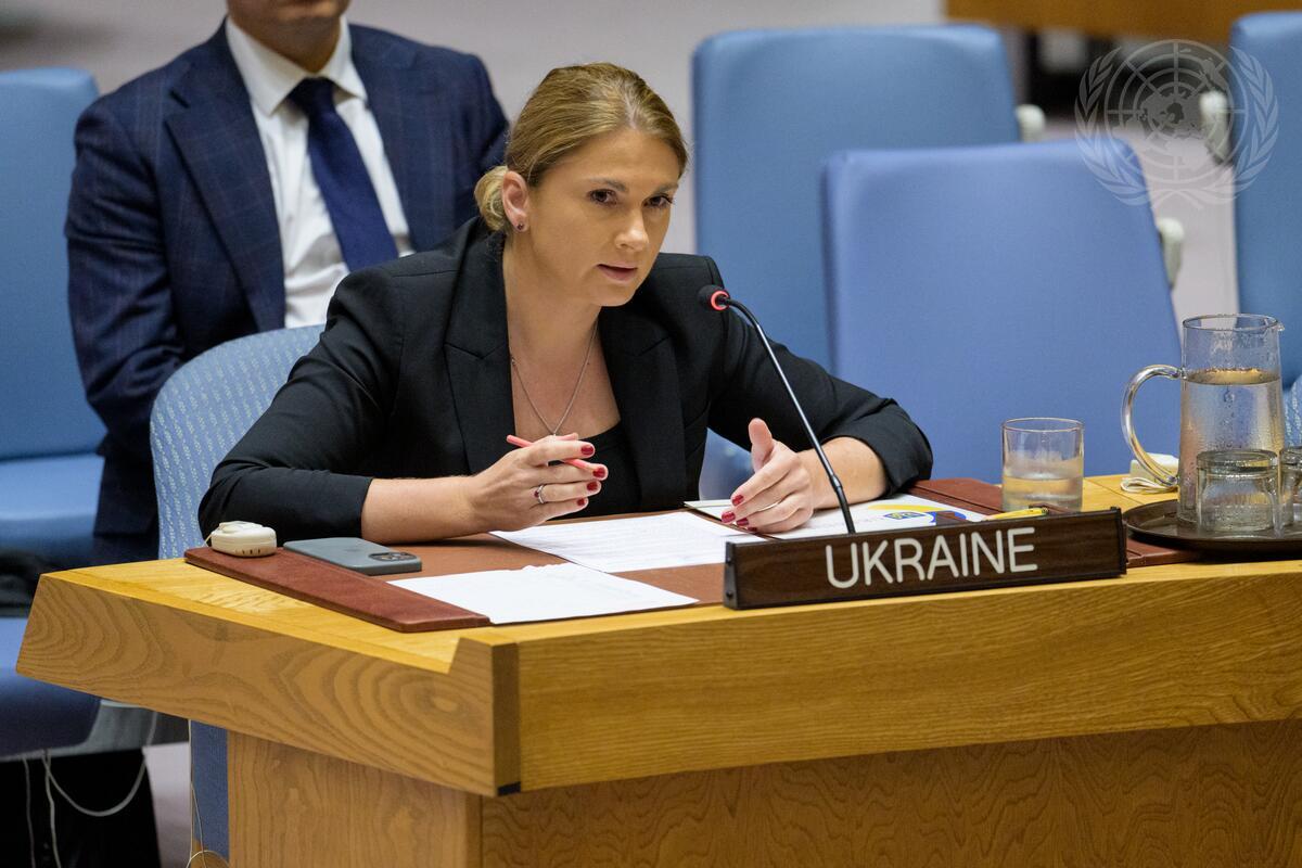 Khrystyna Hayovyshyn, Deputy Permanent Representative of Ukraine to the United Nations, addresses the Security Council meeting on threats to international peace and security.