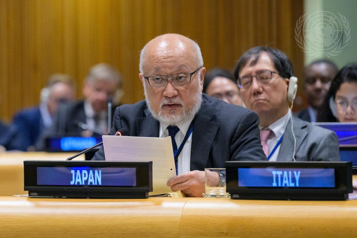Tsukasa Uemura, Special Envoy of the Government of Japan for the Middle East Peace Process, addresses the wrap up session and ministerial meeting entitled "Delivering on Peace: Consolidating Outcomes and Charting the Path Forward" during the high-level International Conference for the Peaceful Settlement of the Question of Palestine and the Implementation of the Two-State Solution.