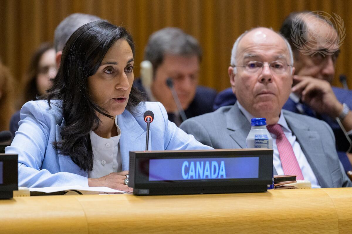 Anita Anand, Minister for Foreign Affairs of Canada, addresses the wrap up session and ministerial meeting entitled "Delivering on Peace: Consolidating Outcomes and Charting the Path Forward" during the high-level International Conference for the Peaceful Settlement of the Question of Palestine and the Implementation of the Two-State Solution.