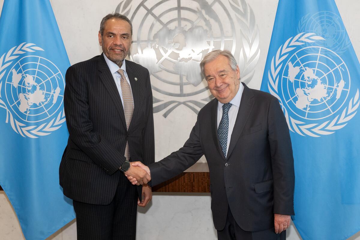 Secretary-General António Guterres (right) meets with Abdullah Ali Al-Yahya, Minister for Foreign Affairs of the State of Kuwait.