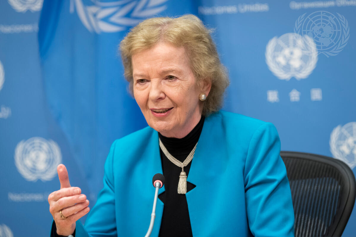 Mary Robinson briefs journalists in her capacity as Chair of The Elders, an independent group of global leaders working together for peace and human rights.