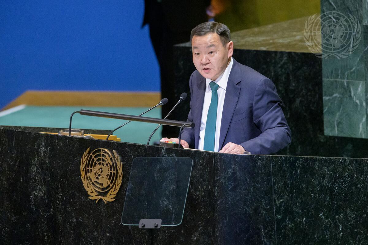 Ankhbayar Nyamdorj, Permanent Representative of Mongolia to the United Nations, introduces a draft resolution on proclaiming 11 July World Horse Day during the 73rd plenary meeting. The resolution was later adopted by 169 votes to 1, with 0 abstentions.