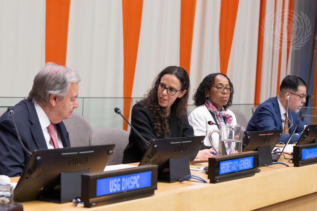 Juliana Gaspar Ruas (centre left), Chair of the Advisory Committee on Administrative and Budgetary Questions, speaks during the meeting on the introduction of the Proposed Programme Budget for 2026 to the Advisory Committee on Administrative and Budgetary Questions (ACABQ). At left is Secretary-General António Guterres.