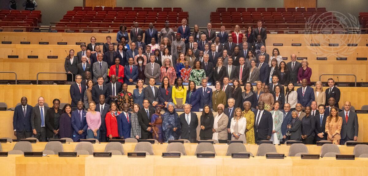 Secretary-General António Guterres (front row centre right) and Deputy Secretary-General Amina Mohammed (front row centre left) meet with Resident Coordinators During The Resident Coordinator Global Meeting at United Nations Headquarters.