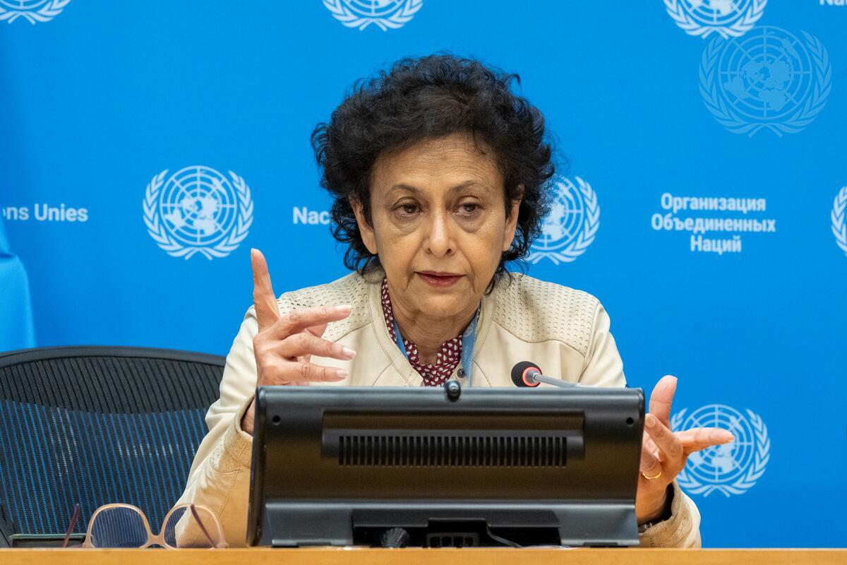 Irene Khan, Special Rapporteur on the promotion and protection of the right to freedom of opinion and expression, briefs reporters at UN Headquarters.