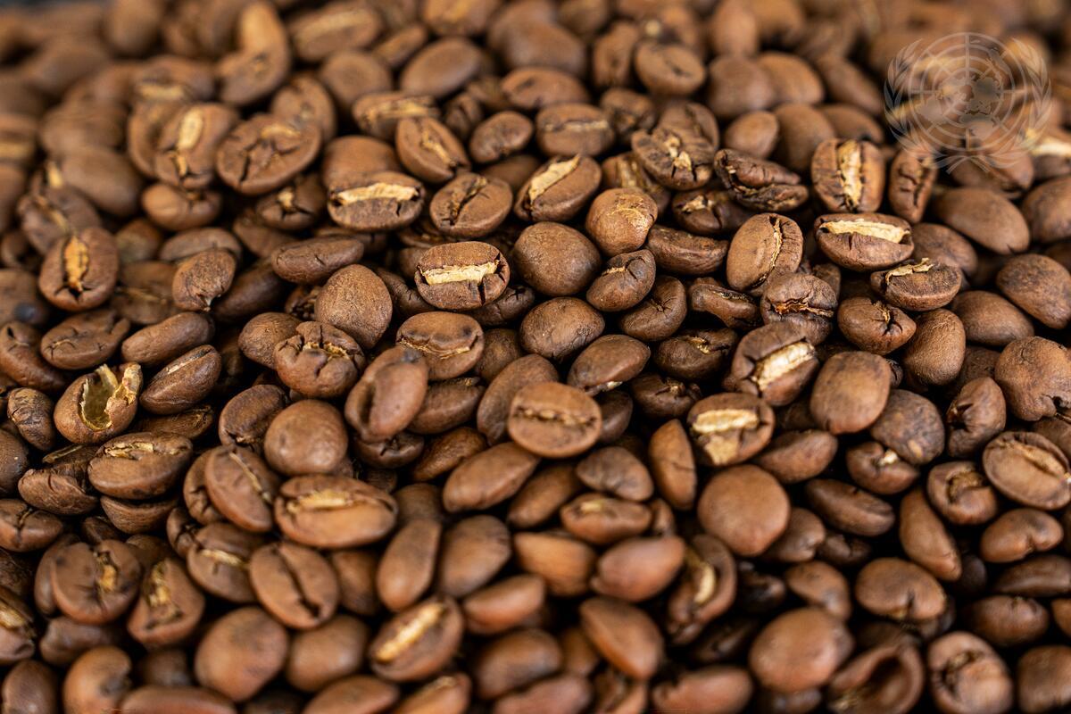 Detail view of coffee beans from Houaphanh province, Laos.