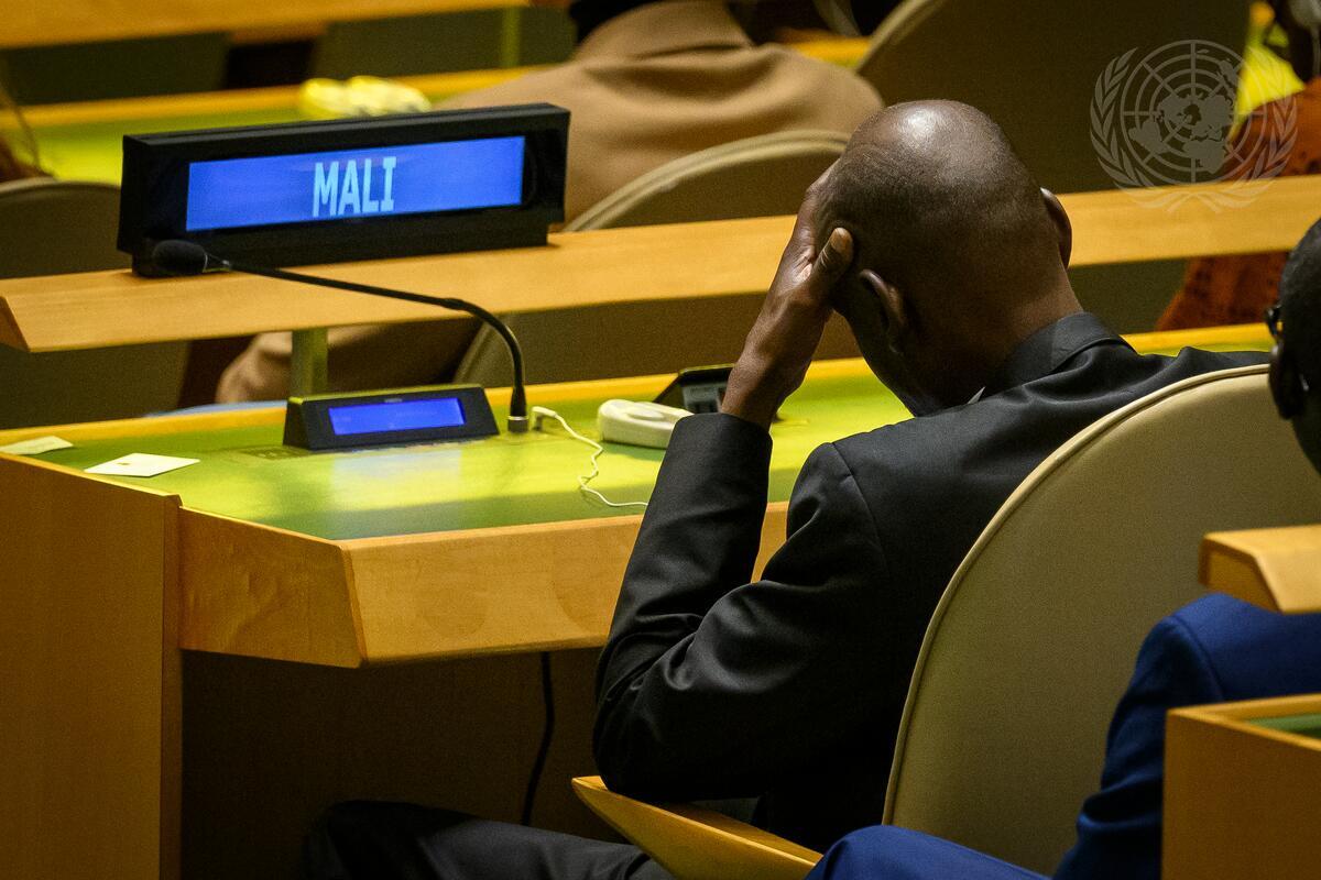 A delegate from Mali sits in the General Assembly Hall on the fifth day of the 79th General Assembly Debate.
