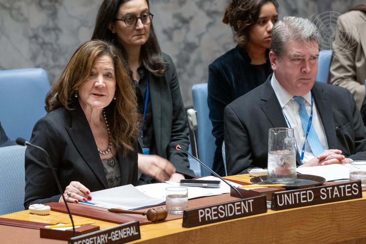 Dorothy Shea (left), Deputy Permanent Representative of the United States Mission to the United Nations and President of the Security Council for the Month of December, chairs the Security Council meeting on threats to International Peace and Security in Yemen and Israel.