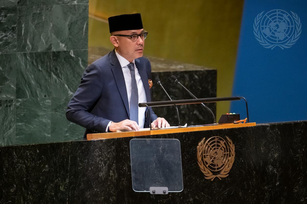 Arrmanatha Christiawan Nasir, Permanent Representative of the Republic of Indonesia to the United Nations, introduces a draft resolution on a "Demand for ceasefire in Gaza" during the resumed 10th Emergency Special Session of the General Assembly on “Illegal Israeli actions in occupied East Jerusalem and the rest of the Occupied Palestinian Territory”.