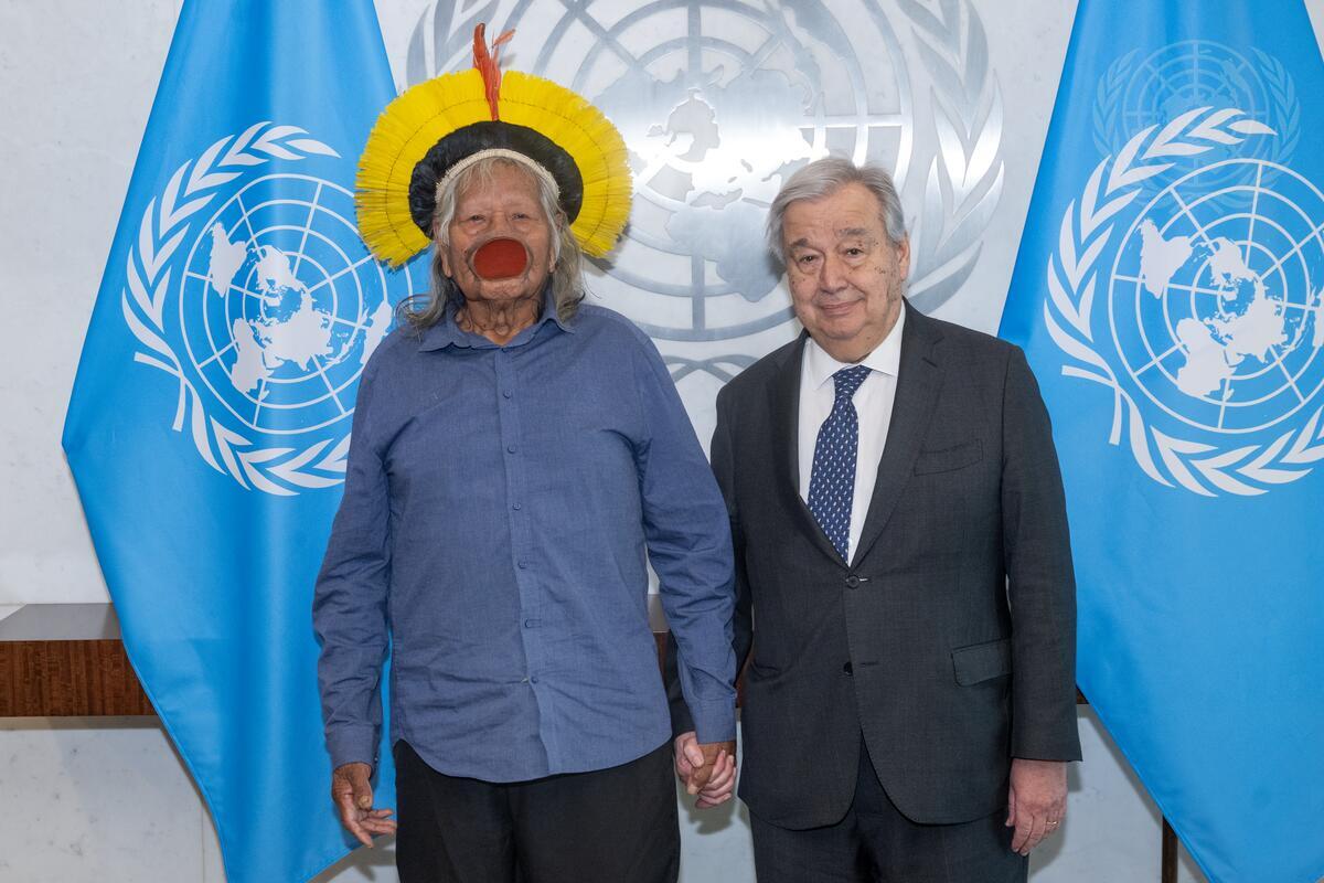 Secretary-General Meets with Indigenous Leader of Kayapo People