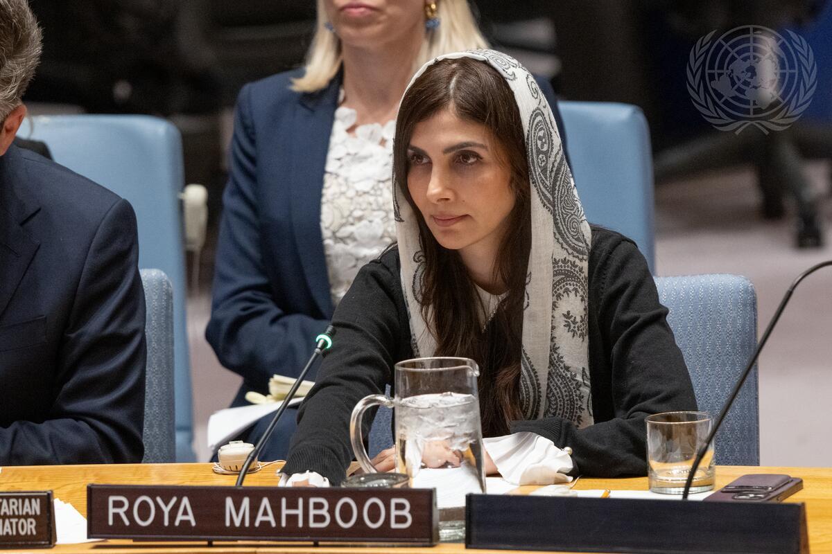 Roya Mahboob, Chief Executive Officer and Co-Founder of the Digital Citizen Fund, briefs the Security Council meeting on the situation in Afghanistan.