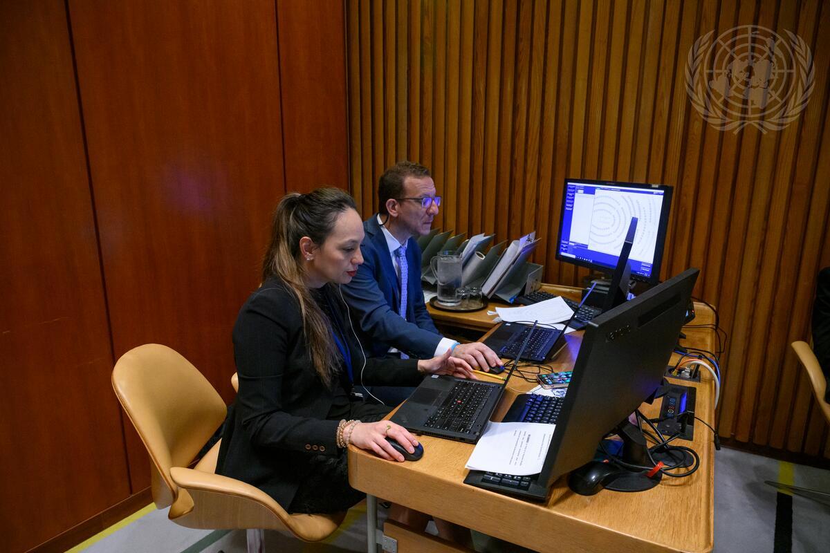 A view of Conference Officers at work during the General Assembly preparatory meeting of the High-Level International Conference for the Peaceful Settlement of the Question of Palestine and the Implementation of the Two-State Solution.
