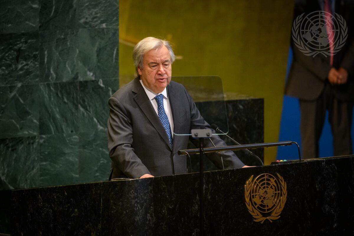Secretary-General António Guterres delivers a report on "Responsibility to protect: 20 years of commitment to principled and collective action" to the 80th plenary meeting of the General Assembly on the theme responsibility to protect and the prevention of genocide, war crimes, ethnic cleansing and crimes against humanity.