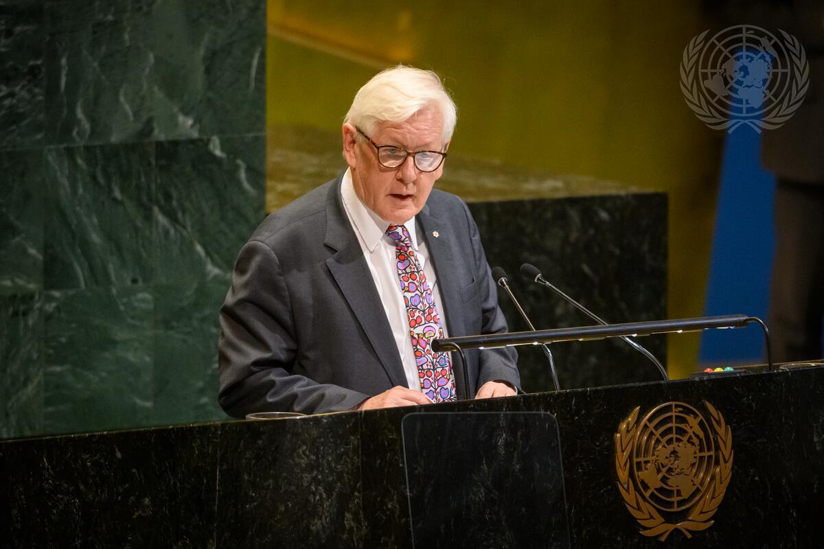Robert Rae, President of the United Nations Economic and Social Council (ECOSOC), addresses the informal General Assembly meeting of the plenary to commemorate the eightieth anniversary of the signing of the Charter of the United Nations.