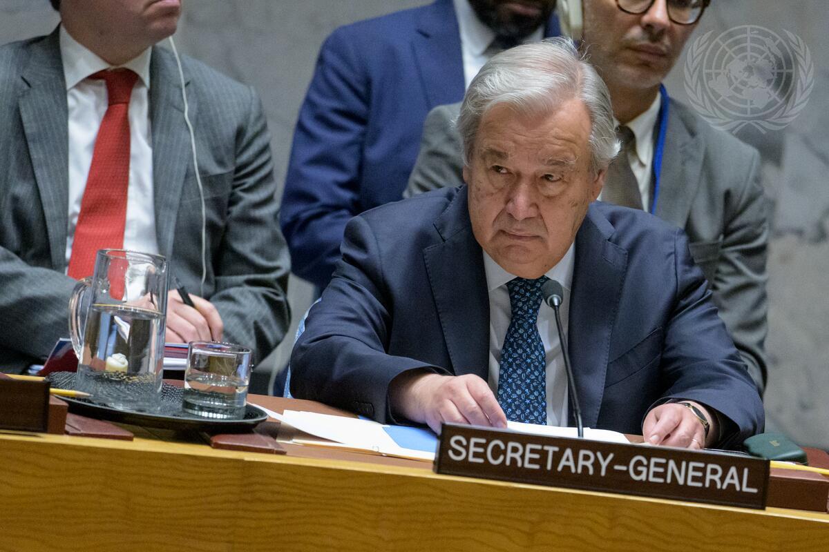 Secretary-General António Guterres attends the Security Council meeting on threats to international peace and security.