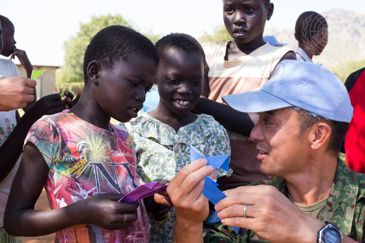 Peacekeepers from the Japanese contingent serving with the United Nations Mission in South Sudan (UNMISS) make their weekly visit to the House of Hope Orphanage in Juba, South Sudan.