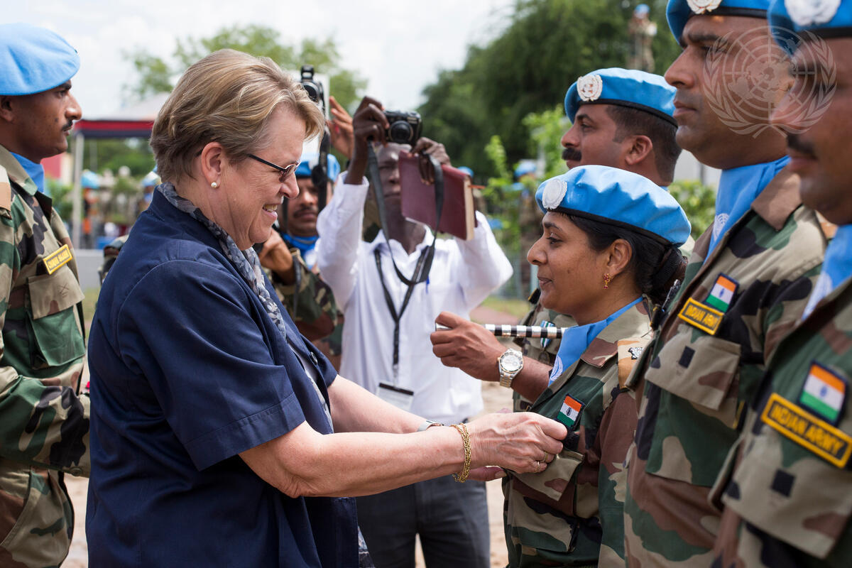 Ellen Margrethe Løj, Special Representative of the Secretary-General and Head of the United Nations Mission in South Sudan (UNMISS) attends a memorial ceremony followed by a medal parade in Bor, Jonglei State, for seven Indian peacekeepers who lost their lives while protecting civilians and humanitarian workers in Jonglei’s Akobo and Pibor counties.