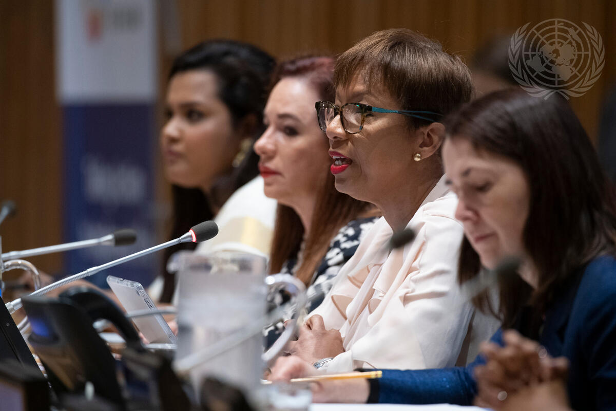 Inga Rhonda King (second from right), President of the Economic and Social Council (ECOSOC), delivers remarks during the opening session of the 2019 ECOSOC Youth Forum. The theme of this year's Forum is “Youth: Empowered, included and equal”.