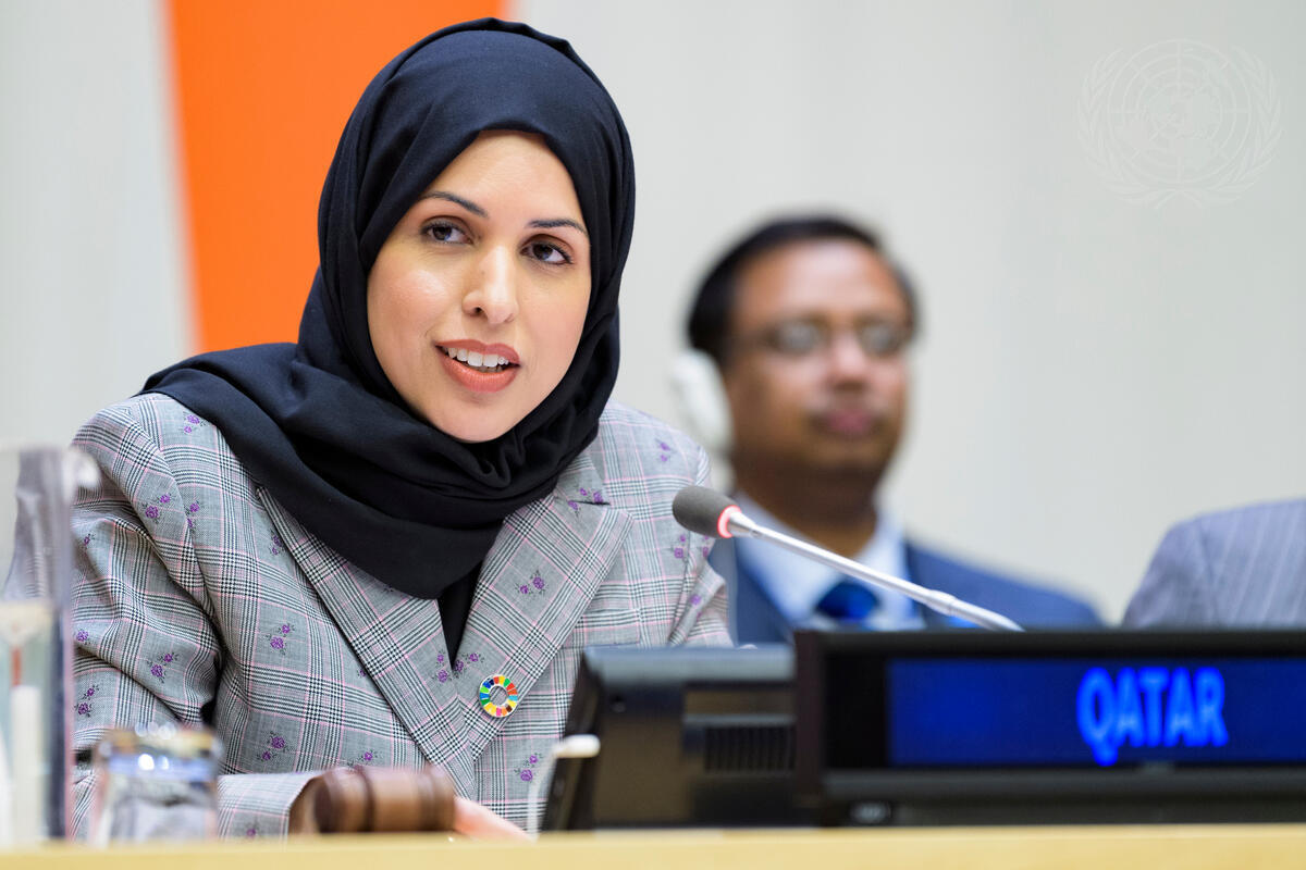 Alya Ahmed Saif Al-Thani, Permanent Representative of Qatar to the United Nations, addresses the event to commemorate World Autism Awareness Day (2 April), held on the theme ""Nurturing Care Framework and Family Centered Care"".