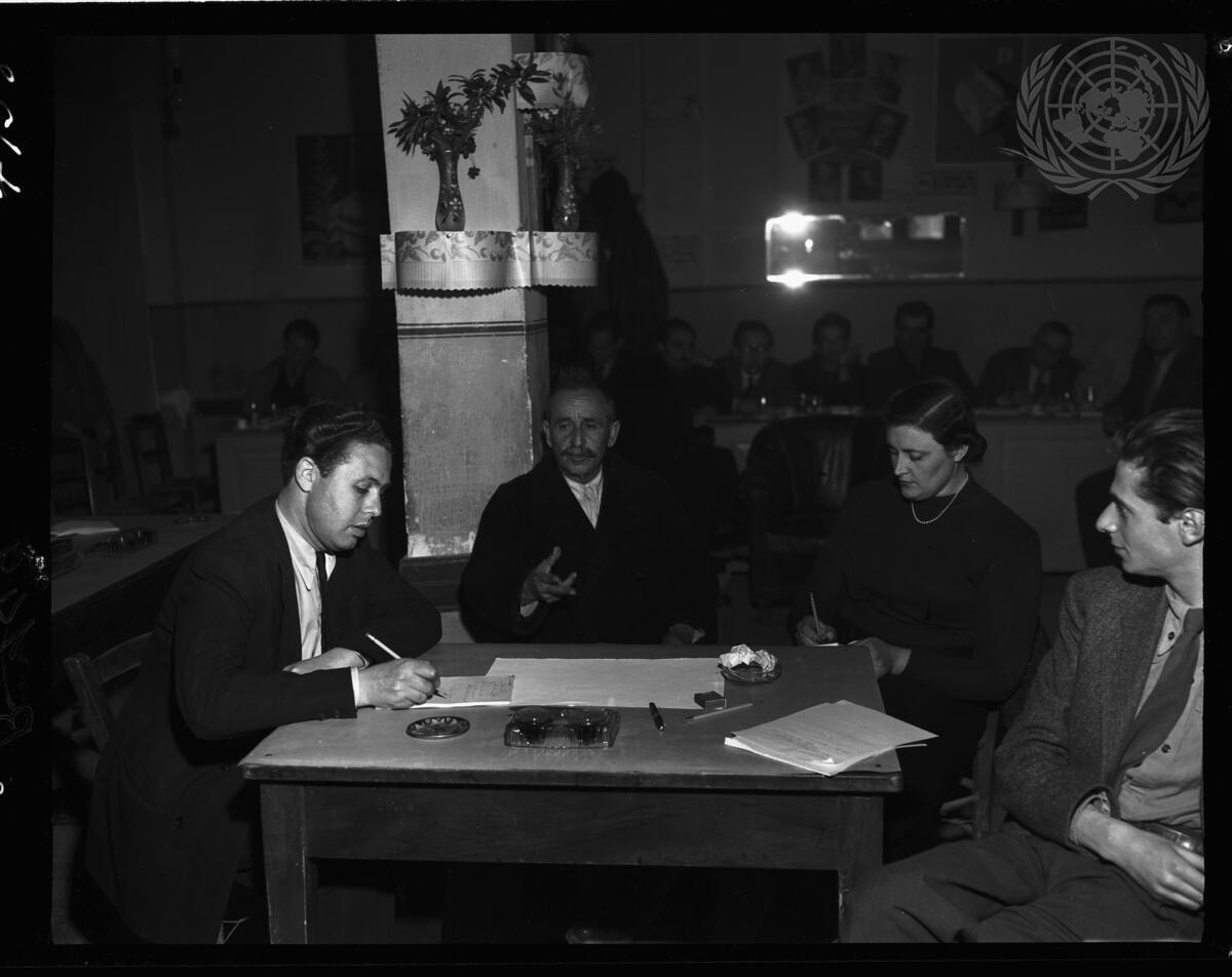 Dr. Vassilios Dambasis, a Yugoslav witness, is interrogated by the investigating team.
