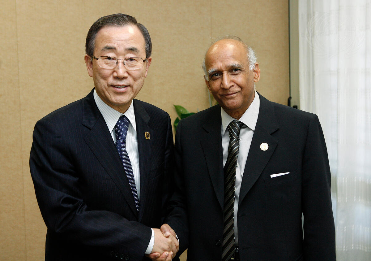 Secretary-General Ban Ki-moon (left) meets with Ahmed Rashid Beebeejaun, Deputy Prime Minister of Mauritius.