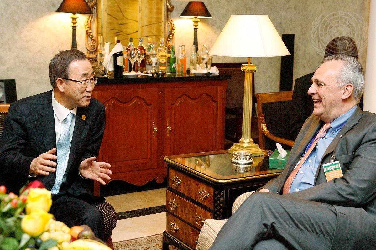Secretary-General Ban Ki-moon (left) holds discussions with Mark Malloch Brown, Minister of State in the Foreign and Commonwealth Office of the government of the United Kingdom of Great Britain and Northern Ireland.