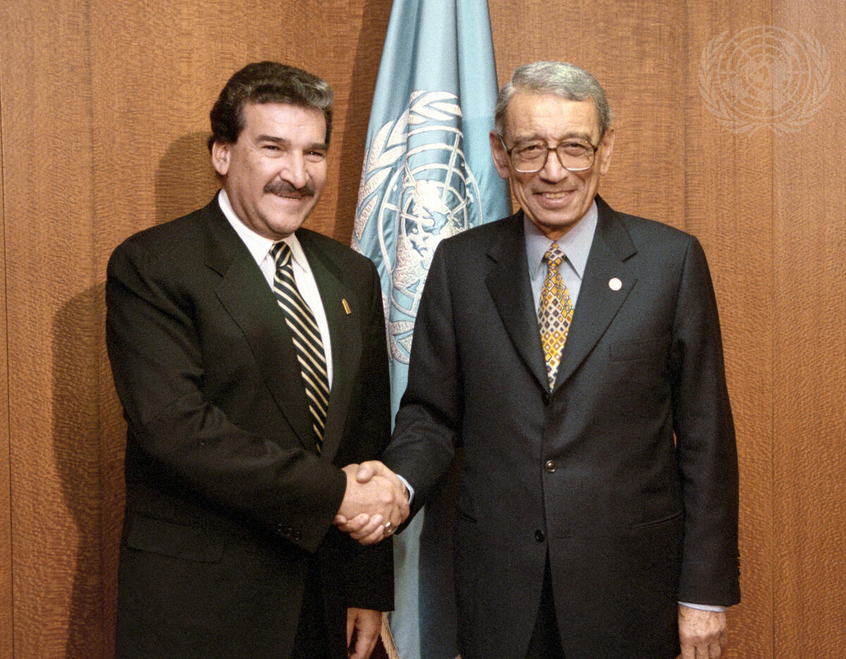 Secretary-General Boutros Boutros-Ghali (right) meets with Ramiro de Leon Carpio, President of Guatemala.
