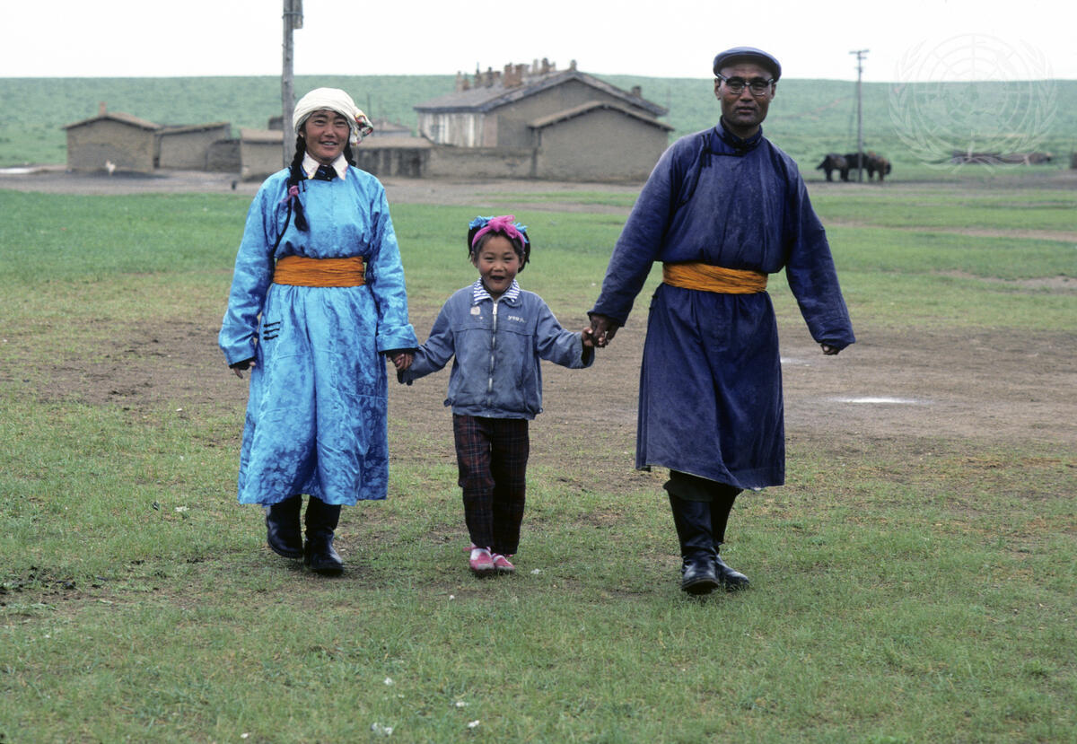A one-child family at the Leap Forward Commune in Xilin Hot, Inner Mongolia. The Chinese government has made great efforts to curb the country's population growth by promoting the one-child family.