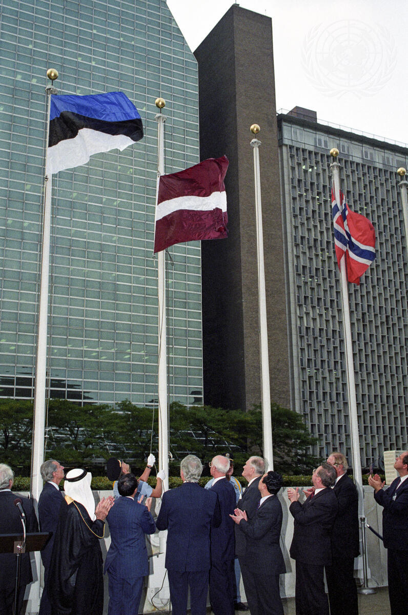 This afternoon, the General Assembly admitted seven new Member States, bringing the total membership in the United Nations to 166. All the new members--the Democratic People's Republic of Korea, the Republic of Korea, Micronesia, the Marshall Islands, Estonia, Latvia and Lithuania--were admitted by acclamation. This evening, the flags of the newly admitted Member States were raised at a ceremony held in front of the Delegate's Entrance.