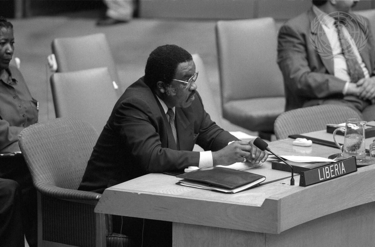 Ambassador William Bull, Permanent Representative of Liberia, during a meeting of the Security Council. The Security Council adopted resolution 866 (1993) to establish the United Nations Observer Mission in Liberia (UNOMIL).