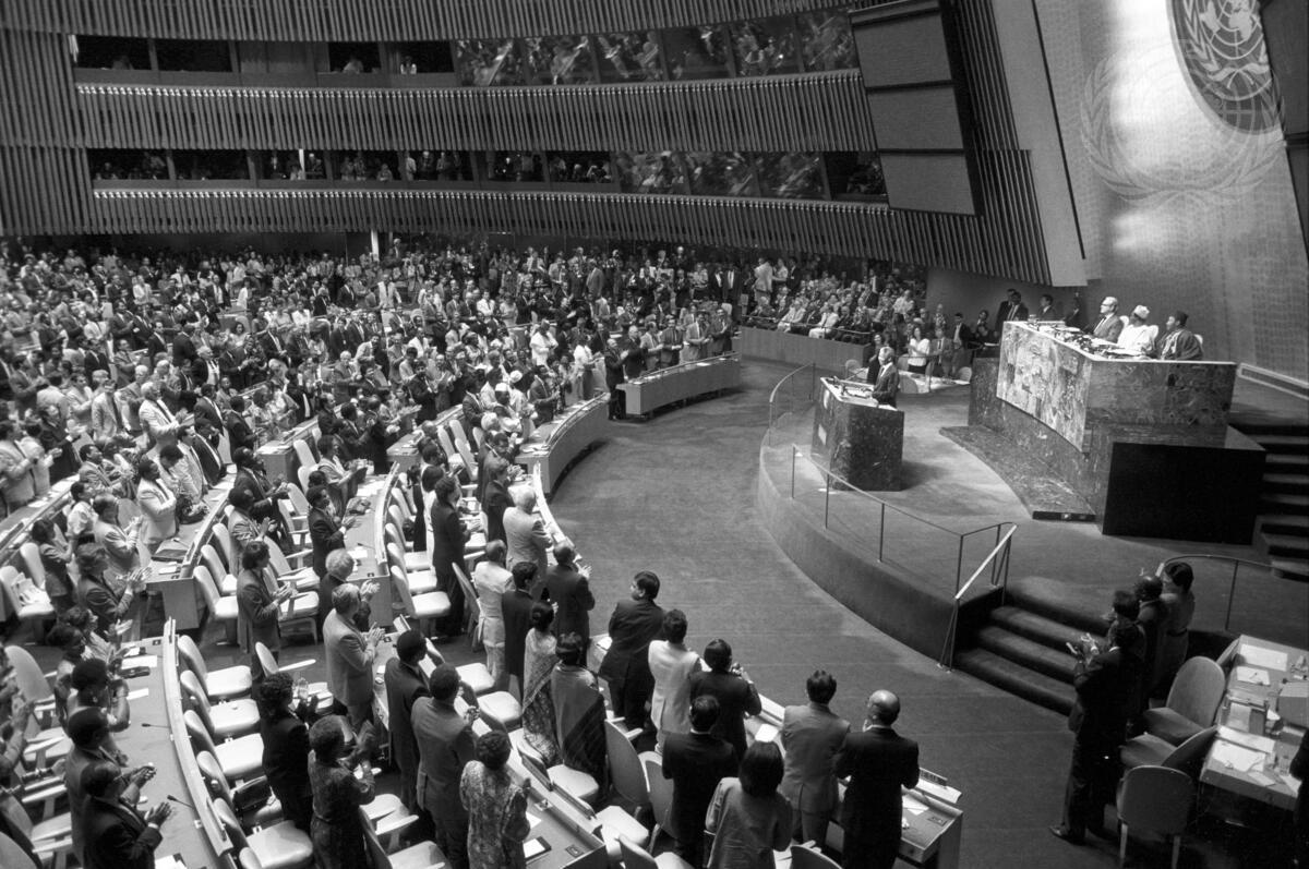 Nelson Mandela, Deputy President of the African National Congress addresses the Special Committee Against Apartheid which is being convened in his honour in the General Assembly Hall.