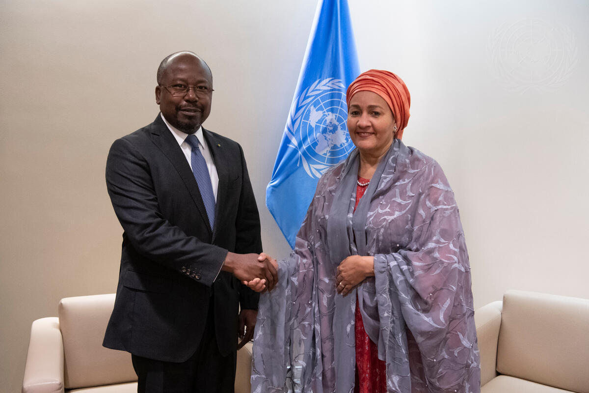 Deputy Secretary-General Amina J. Mohammed (right) meets with Ali Bongo Ondimba, President of the Republic of Gabon.