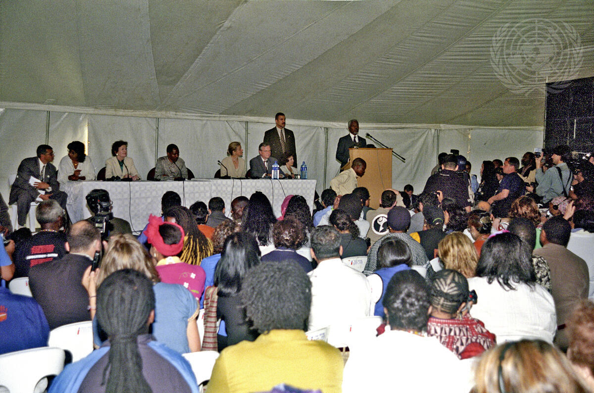 Secretary-General Kofi Annan addressing the NGO Forum, held at Kingsmead Cricket Stadium in Durban.