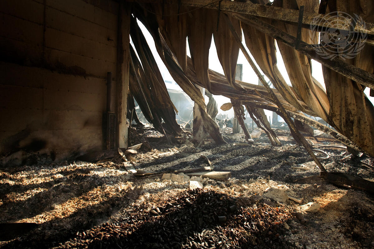 A warehouse facility damaged during the recent fighting located on the grounds of the United Nations Relief and Works Agency for the Palestine Refugees in the Near East (UNRWA) Headquarters.