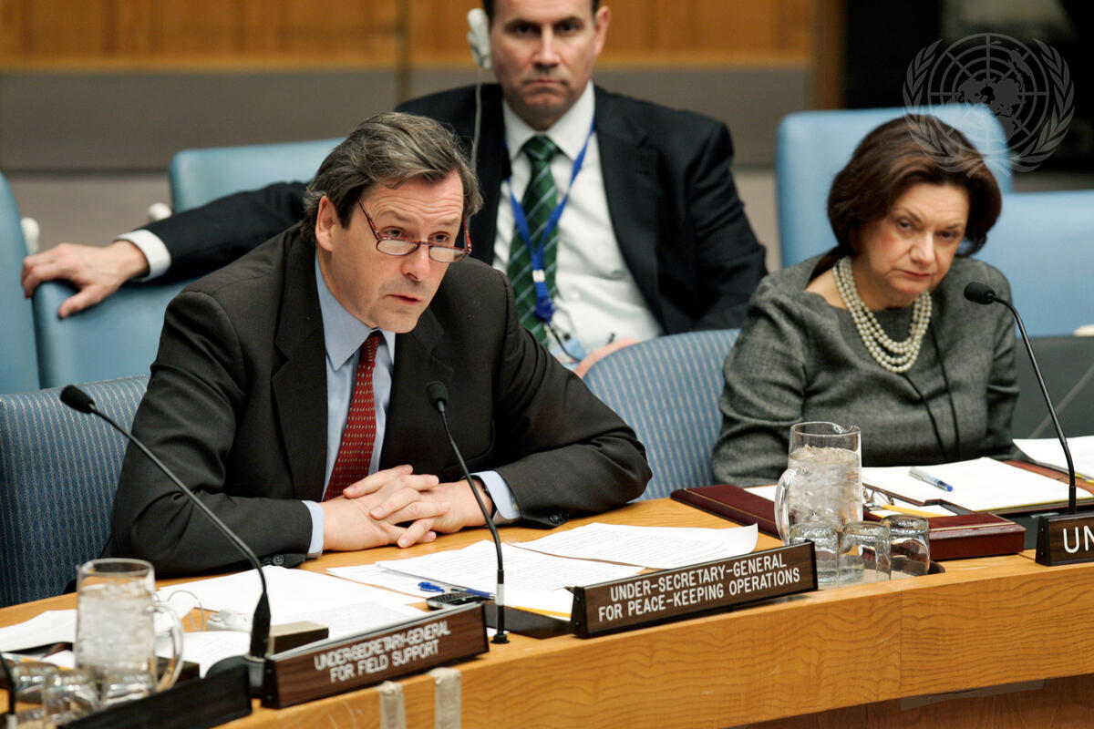 Alain Le Roy, Under-Secretary-General for Peacekeeping Operations, addresses a Security Council meeting on the work of the United Nations Peacekeeping operations.
