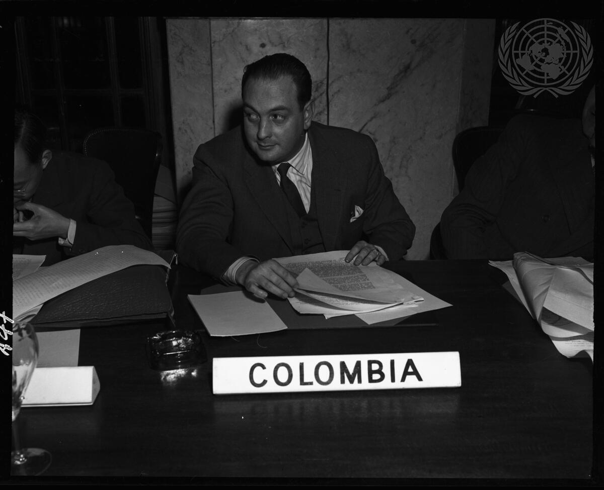 Dr. Fernandes de Soto, member of the Colombian Delegation, deputising for the Chief of the Colombian Delegation at the Acropole Palace Hotel in Athens, Greece.