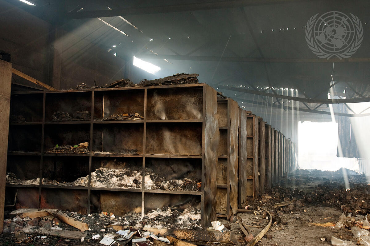 A warehouse facility at the United Nations Relief and Works Agency for the Palestine Refugees in the Near East (UNRWA) headquarters, destroyed during the recent fighting between Israeli troops and Hamas fighters.